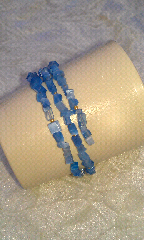 I hope I did justice to the original necklace. I kept the blue topaz chips, the heart, and the original hook and eye clasp and added the blue rounds from the first picture above and the memory wire from the third picture above.