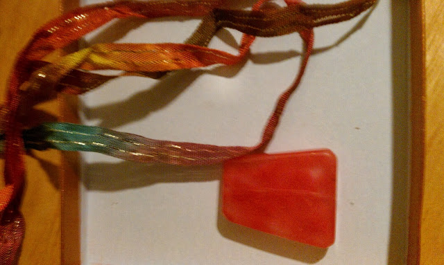 Sharyl had also included a strawberry colored pendant along with some multi-colored ribbon.  I had planned to add the pendant to the ribbon and make a short necklace.  I actually went shopping for ribbon ends, put end in the cart, forgot to give them to cashier, and left without them.  As soon as I finish the bonus pieces, I will post the pictures.