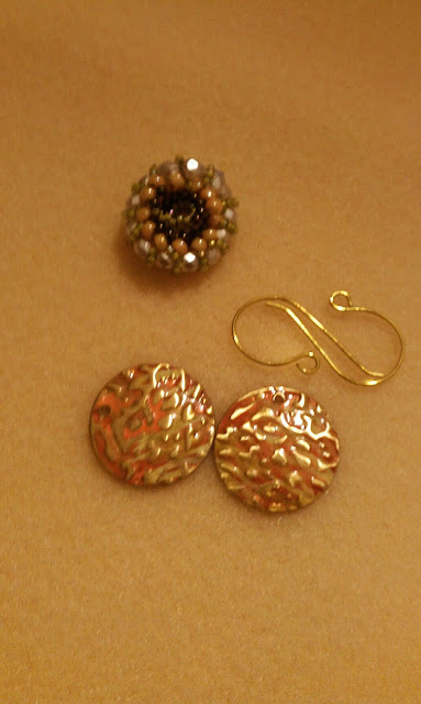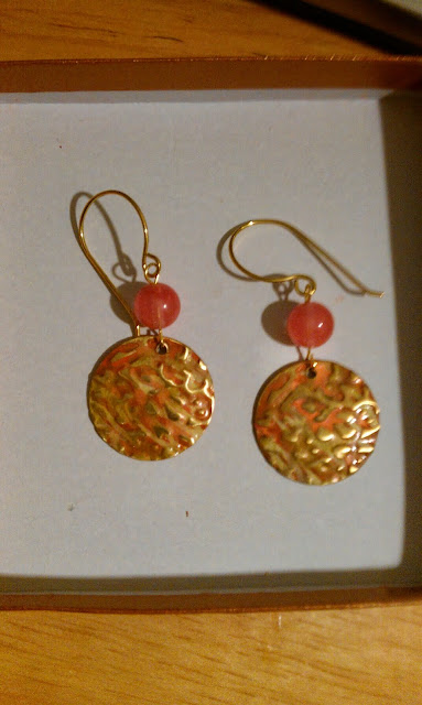 Sheryl sent me several goodies to play with.  A couple of colored metal disks with earring wires that she made.